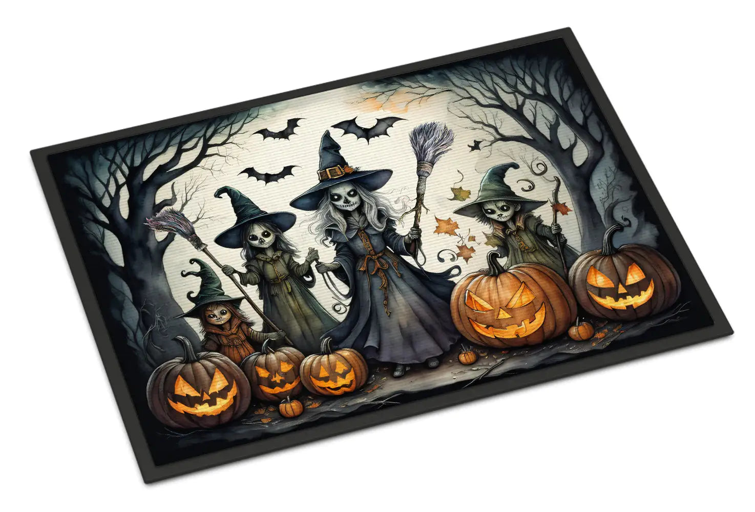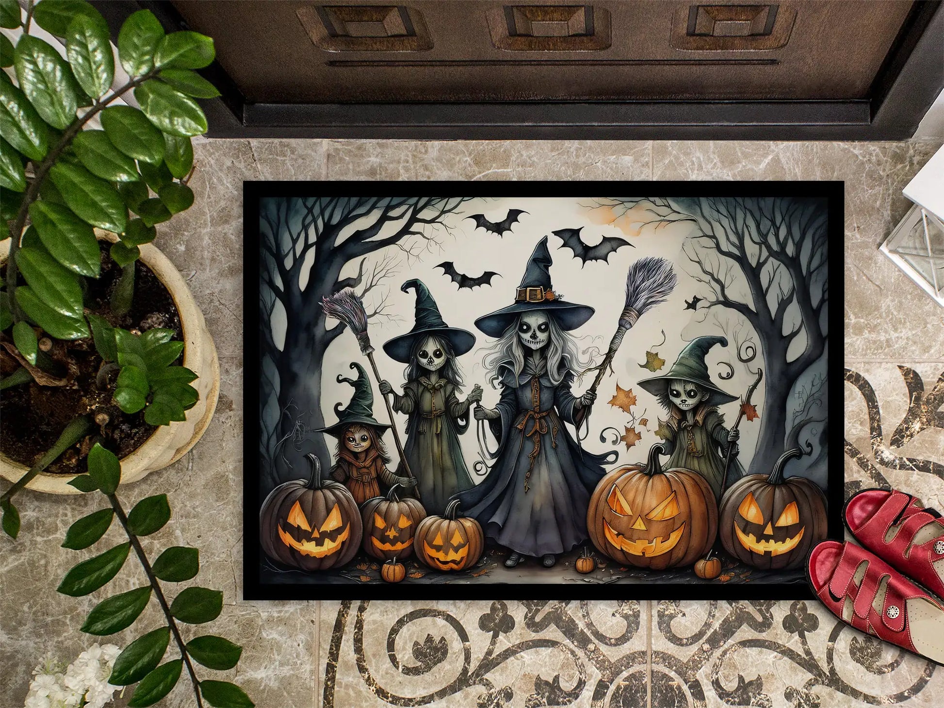 Celebrate Halloween with this Halloween Doormat. Welcome your guests in style with our Artwork Door Mat, designed to withstand almost any weather condition. This mat, measuring approximately 18 by 27 inches, is held together by durable black binding tape. Its top layer, composed of polyester felt, is dyed with the eye-catching image you see on the mat. A few layers below provide the mat with stability, while its rubber bottom is stamped to help prevent slipping and ensures safety. Our mat works wonderfully as both an indoor or outdoor door mat. For cleaning, simply hose it off with water or use a power washer - no need for any cleaner that produces suds. Avoid scrubbing with a brush, instead, opt for the vacuum on floor setting. Designed manufactured and printed in the USA, this mat is a perfect addition to your porch, outdoor kitchen, entryway, or any indoor space. Its unique design makes it a charming decorative rug that greets your guests and adds a stylish touch to your home decor.